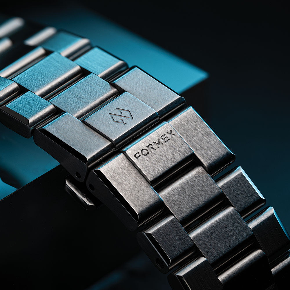 Applied indices and Formex logo, and vertically brushed and mirror-polished bevels.